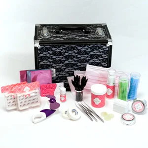 Cosmetic Case · Professional Adhesive · Gel Remover · Black loose lashes in multiple sizes, lengths and curl · Kelly Lash mink trays · Straight Tweezers · Bended Tweezers · Angled Tweezers · X-Type Tweezers · Mini Scissors · Disposable Mascara Brushes · Surgical Tape · Silicone Pad · Microtip Swabs · Eye Wash · Under Eye Pads · Surgical Face Mask · Practice Strip Lash · Hand Sanitizer · Tissue Alcohol Pads · Air Blower · Cotton Rounds · Q-Tips & more